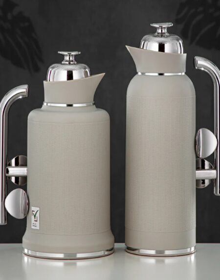 Almarjan Vacuum Flask 2Pc Set Light Grey & Silver Handle