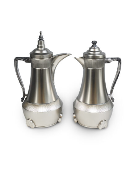 Almarjan Vacuum Flask Set with Tea& Coffee Set 24Pcs Set Floral &Matt Silver
