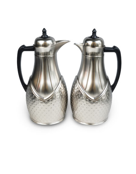 Almarjan Vacuum Flask Set with Tea& Coffee Set 24Pcs Set Floral &Matt Silver