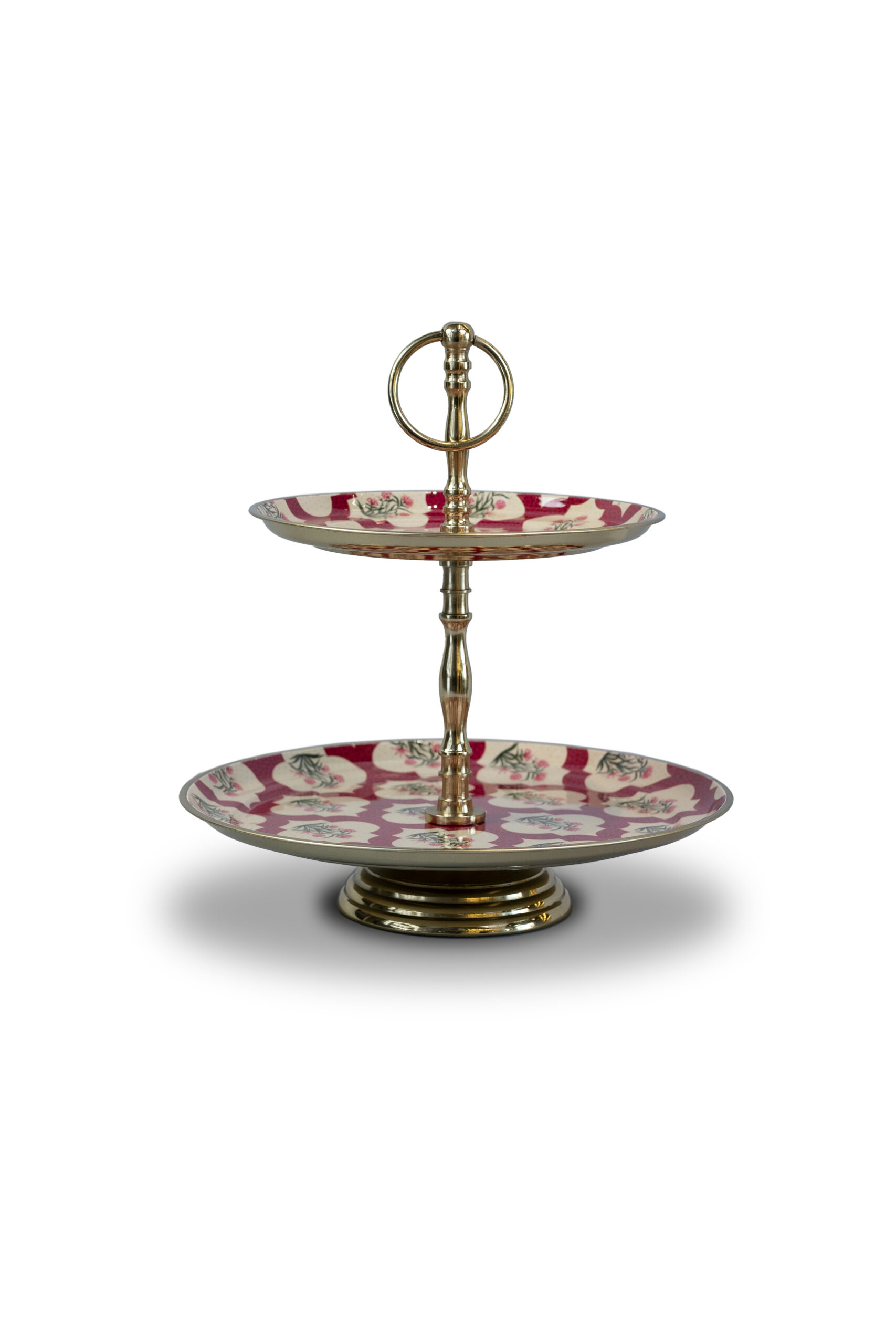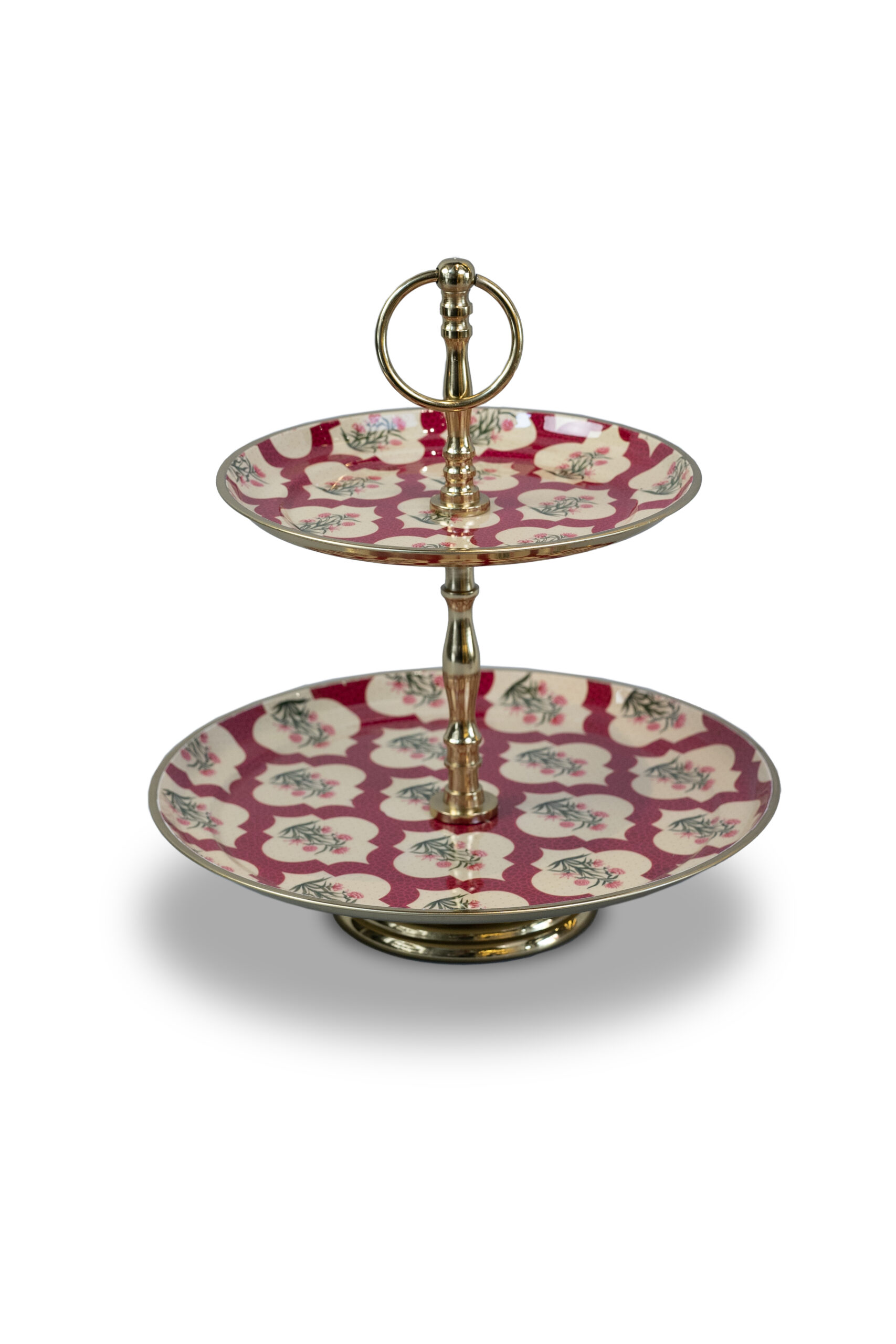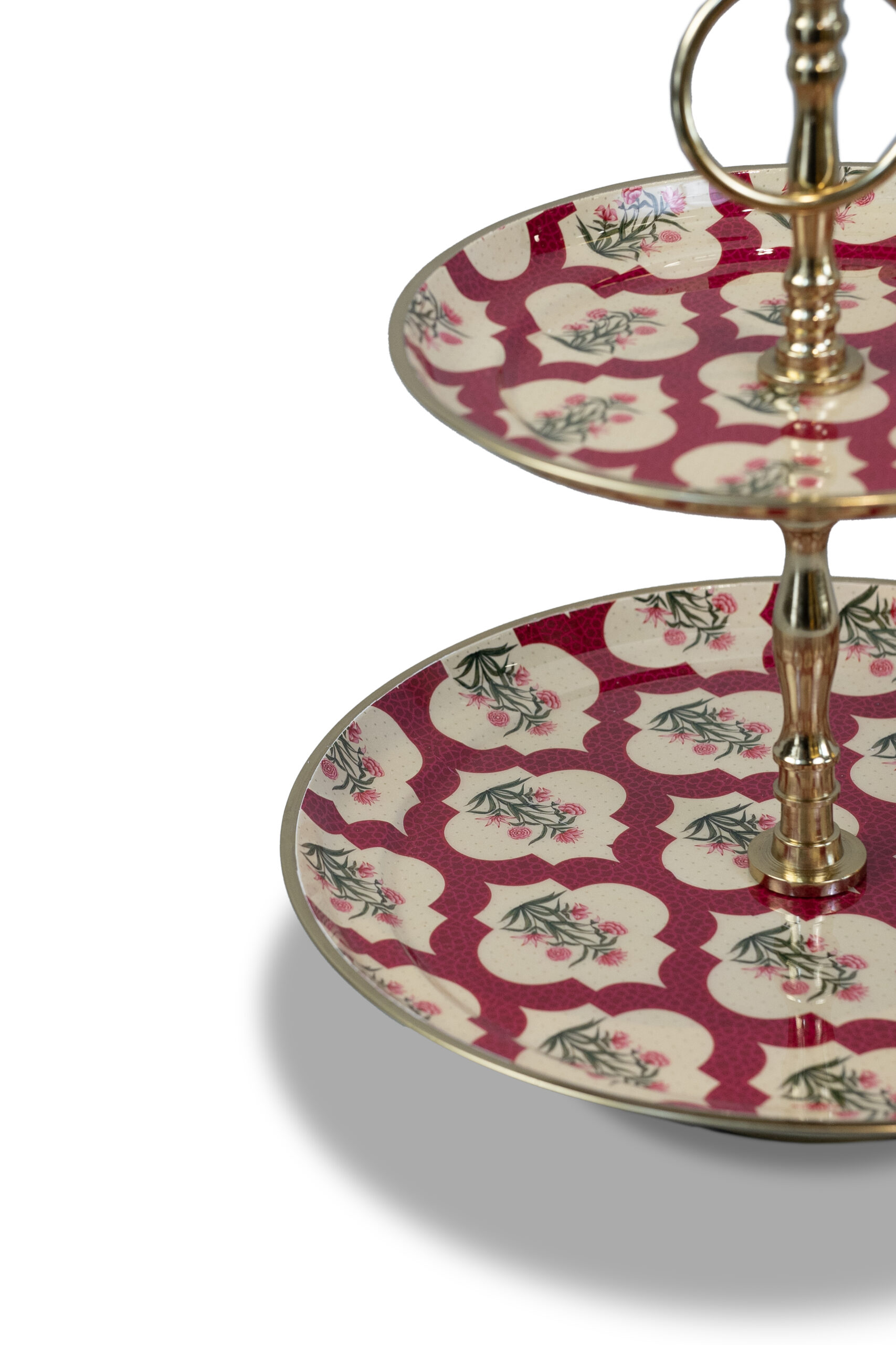 صينية تقديم من طبقتين بزخرفة زهرة الخشخاش القرمزية