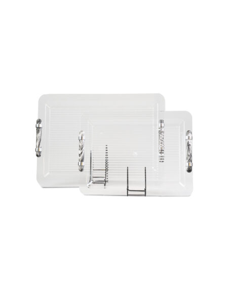 صينية وابا أكريليك بمقبض طقم قطعتين فضي جرانيت