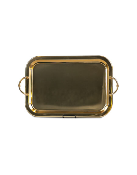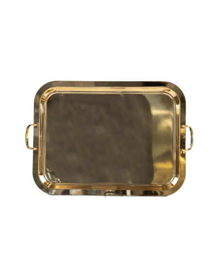 صينية مستطيلة مفردة متوسطة الحجم بمقبض ذهبي