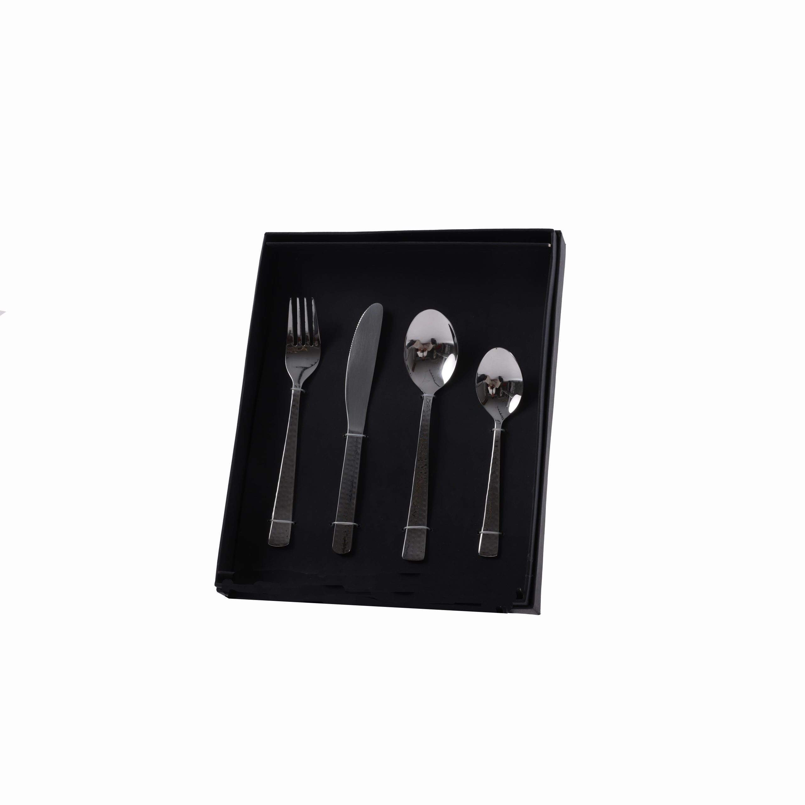 تُعرض المجموعة في علبة أنيقة باللون الأسود، مما يجعلها ليست فقط عملية ولكن أيضًا جذابة من الناحية الجمالية. كما أن الخلفية المتباينة للعلبة تبرز أدوات المائدة اللامعة، مما يخلق عرضًا بصريًا لافتًا يمكنه إبهار الضيوف وتعزيز تجربة تناول الطعام بشكل عام. توفر المقابض المنقوشة قبضة مريحة، مما يضمن سهولة الاستخدام والدقة أثناء الوجبات.