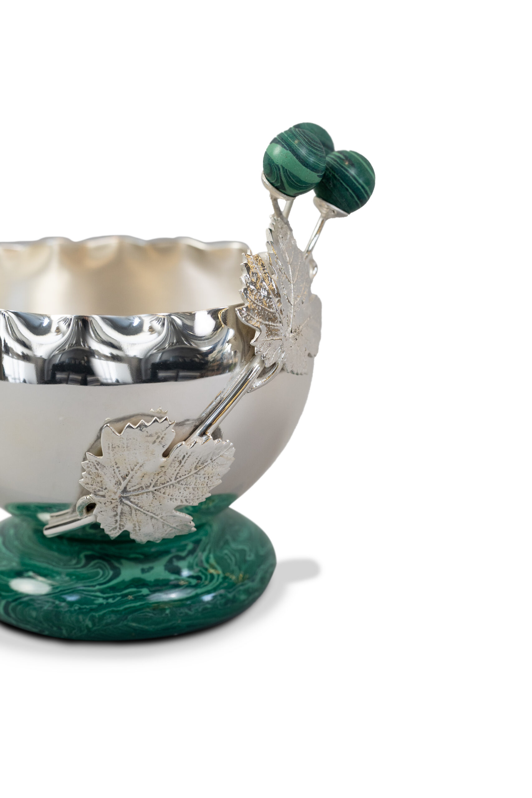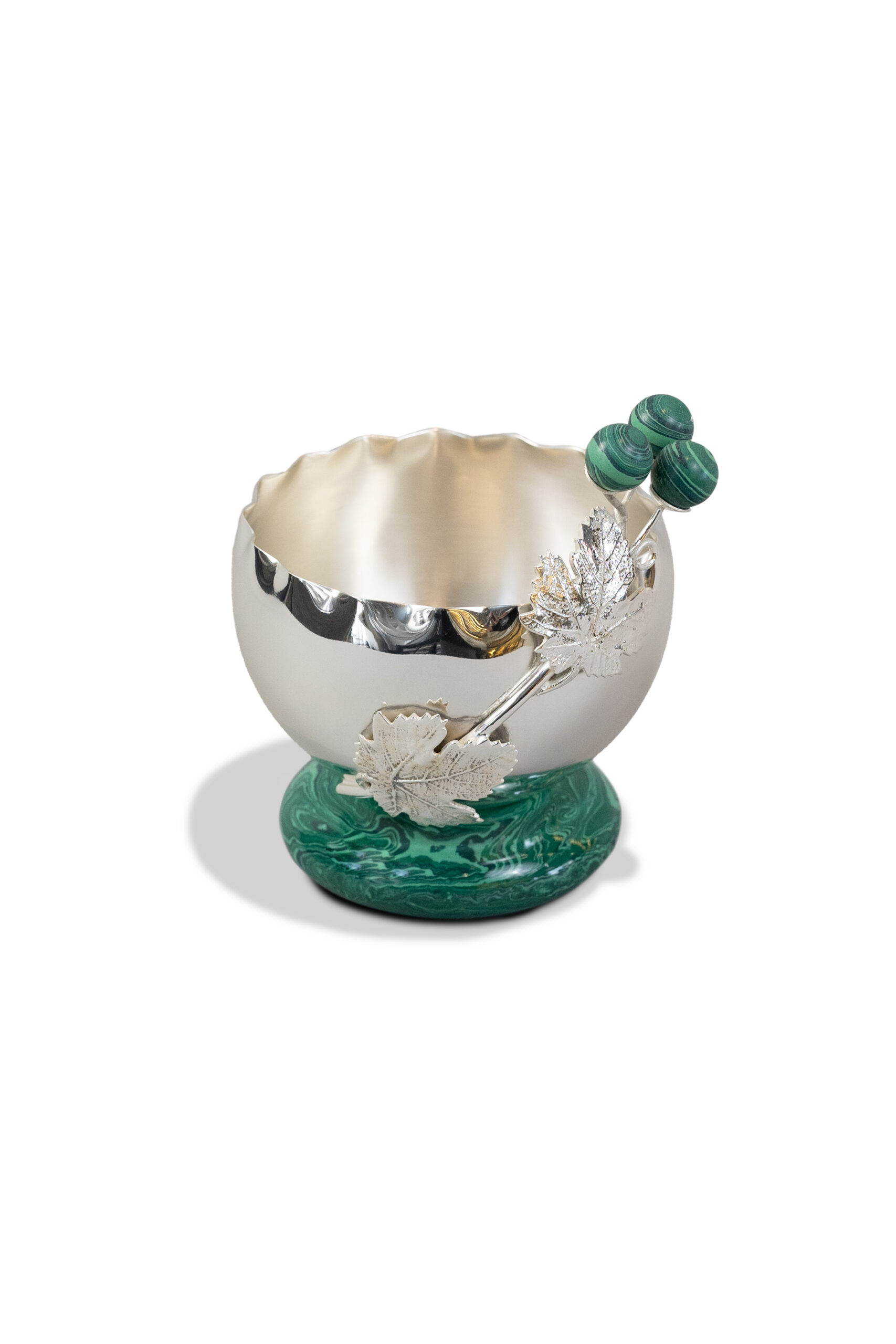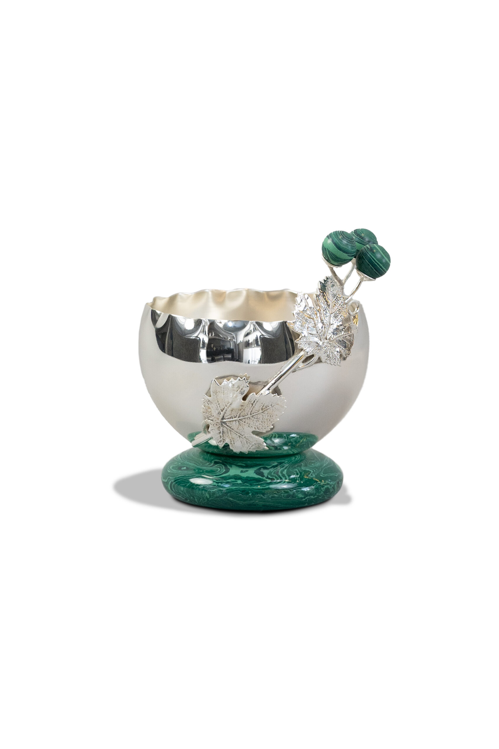 وعاء فضي بورقة القيقب مع قاعدة رخامية أخضر داكن