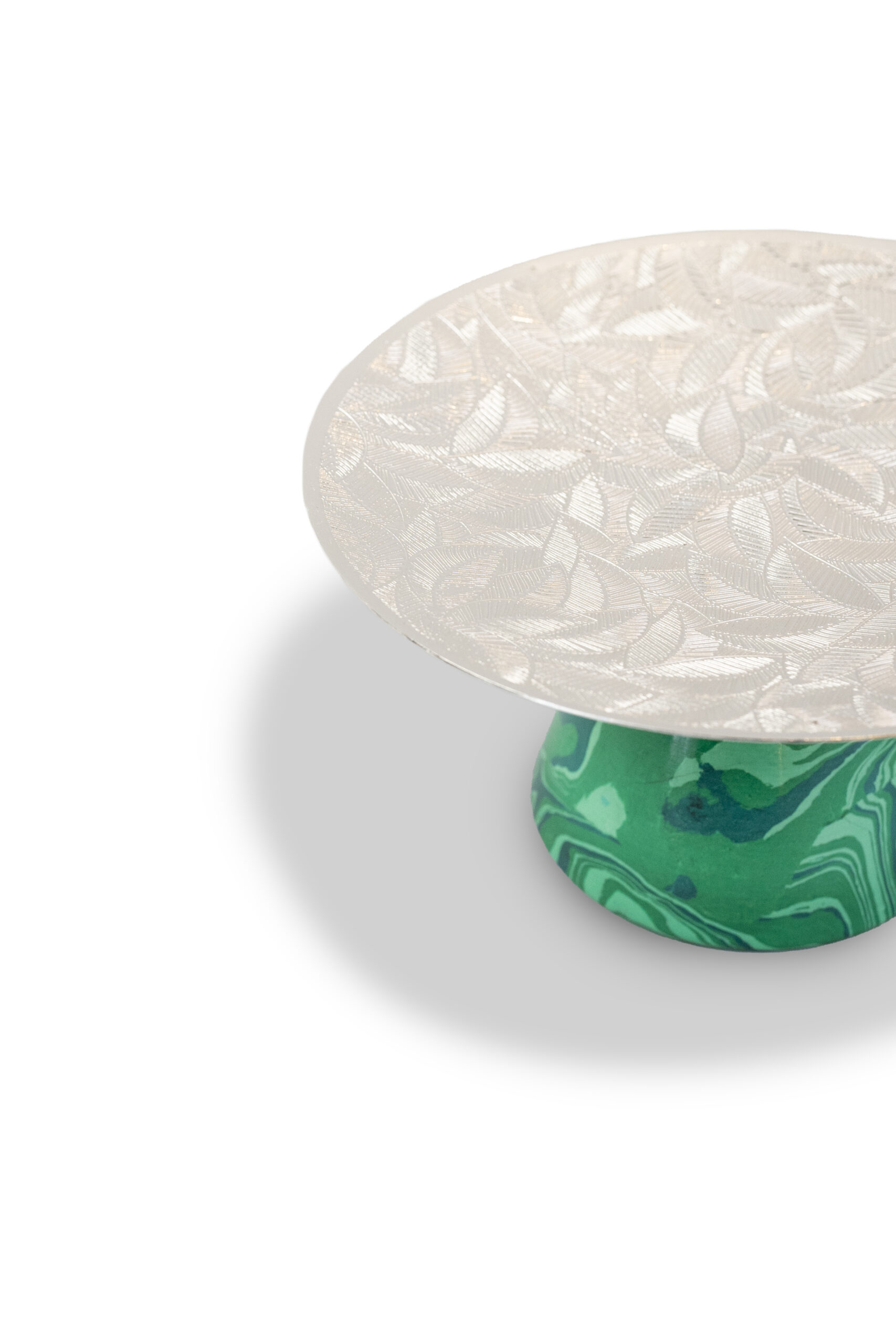 وعاء فضي للفواكه والبسكويت 8 إنش مع قاعدة رخامية أخضر داكن