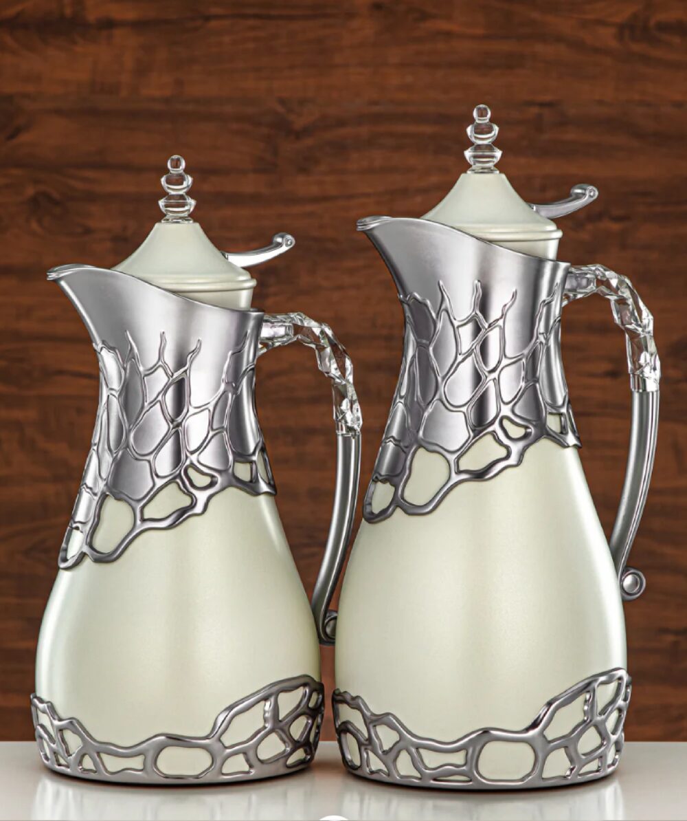 Almarjan Vacuum Flask 2Pc Set Cream& Silver