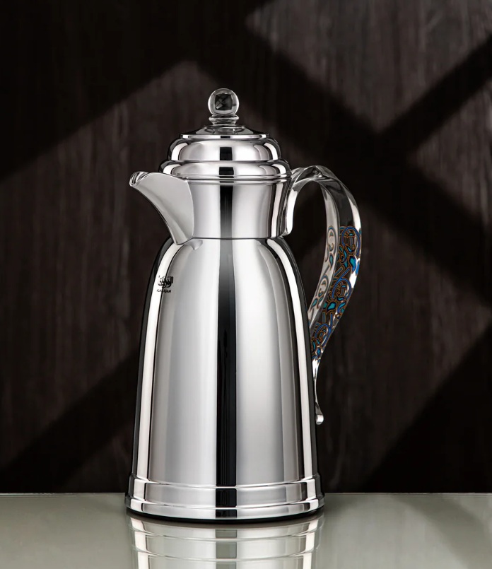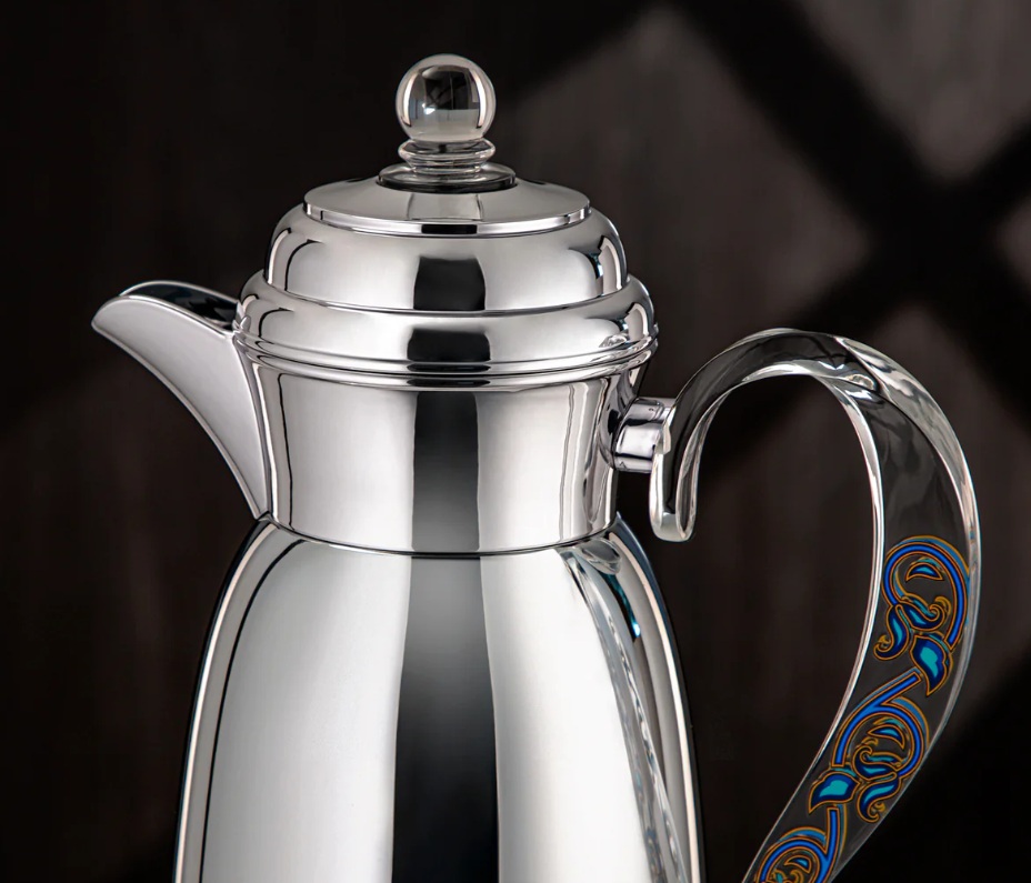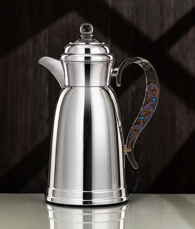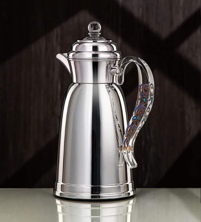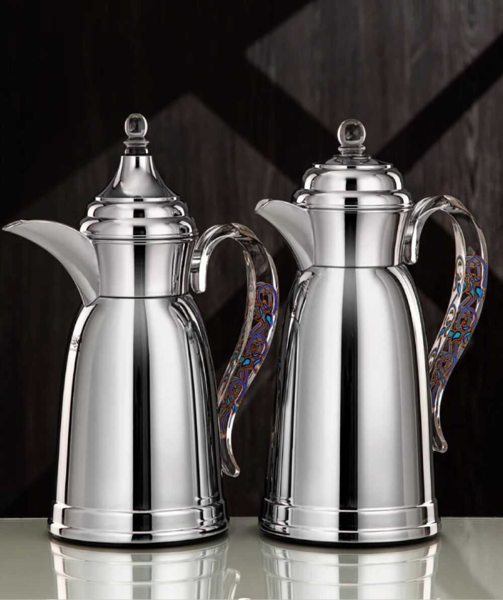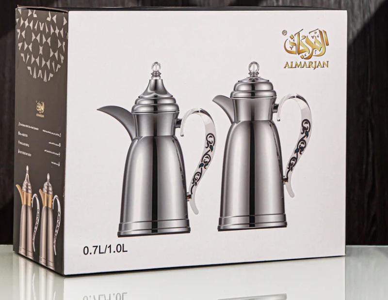 Almarjan Vacuum Flask 2Pc Set Metal Silver with Acrylic Handle