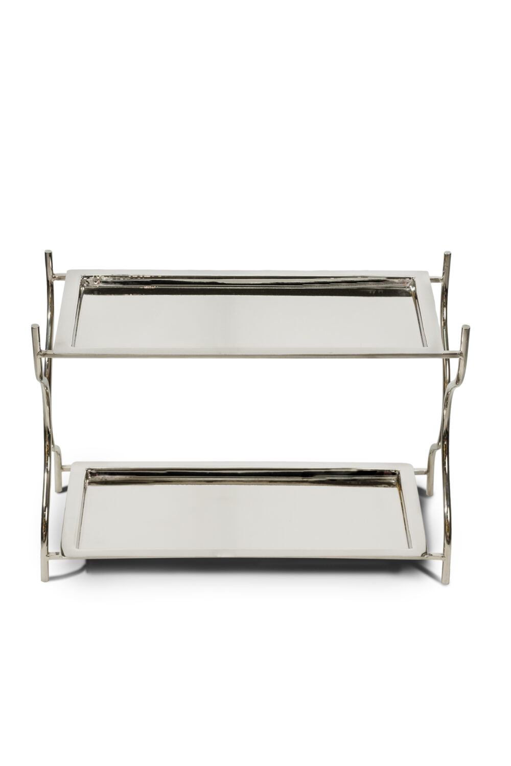 حامل تقديم الطعام المعدني ذو الطبقتين