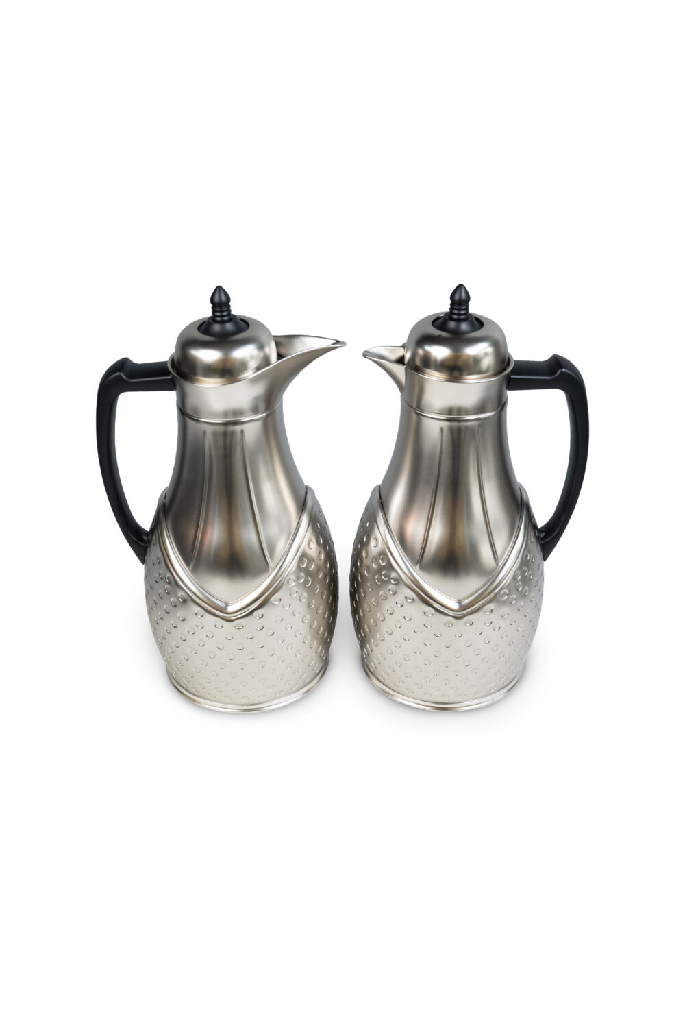 كمية Delux Vacuum Flask 2 Pc Set Silver with Black Handle