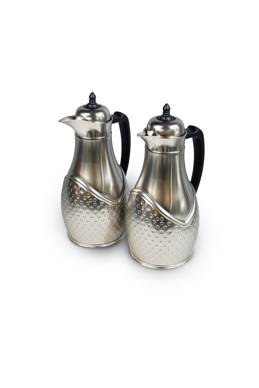Almarjan Vacuum Flask 2Pc Set Metal Body with Acrylic Handle &Matte Silver