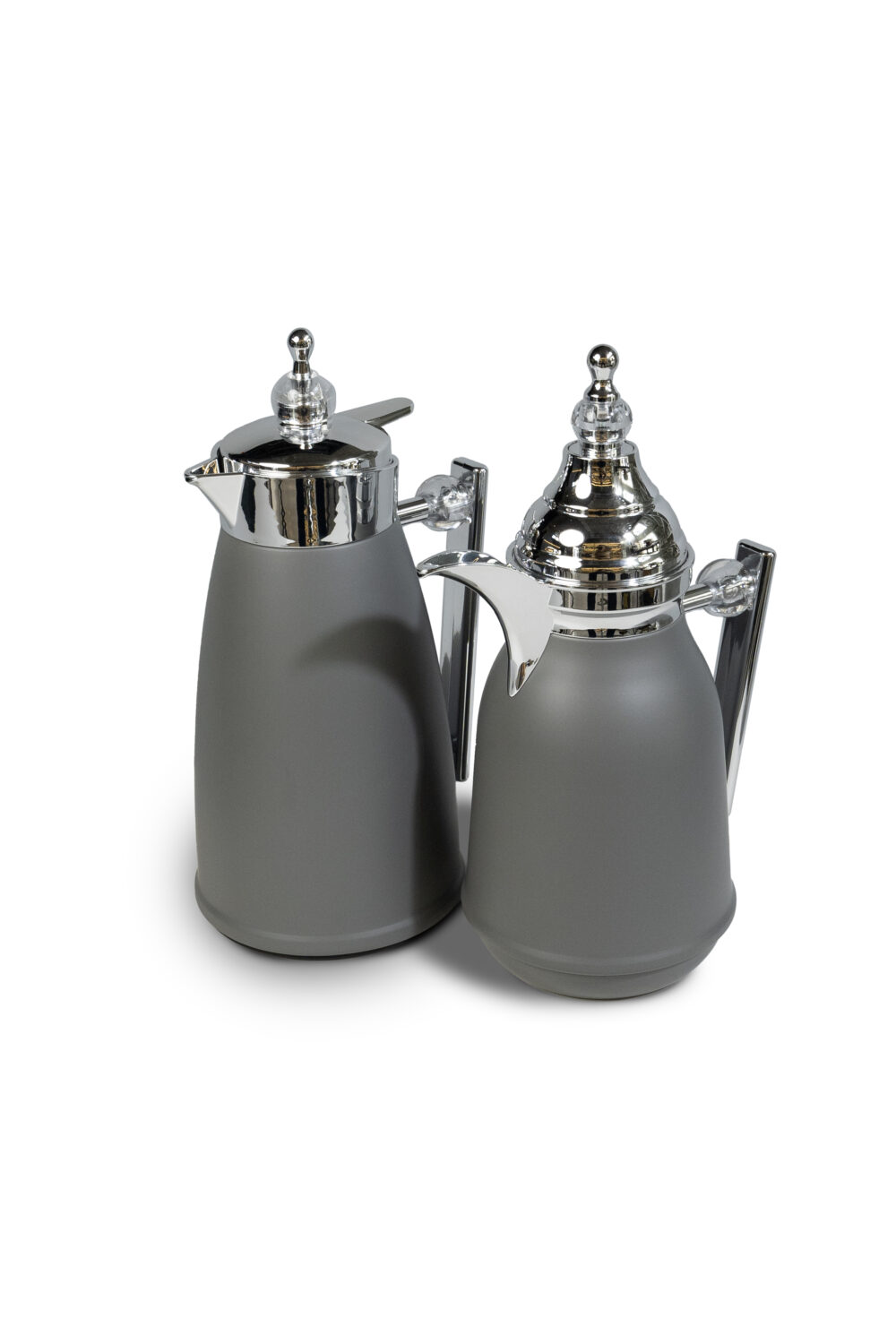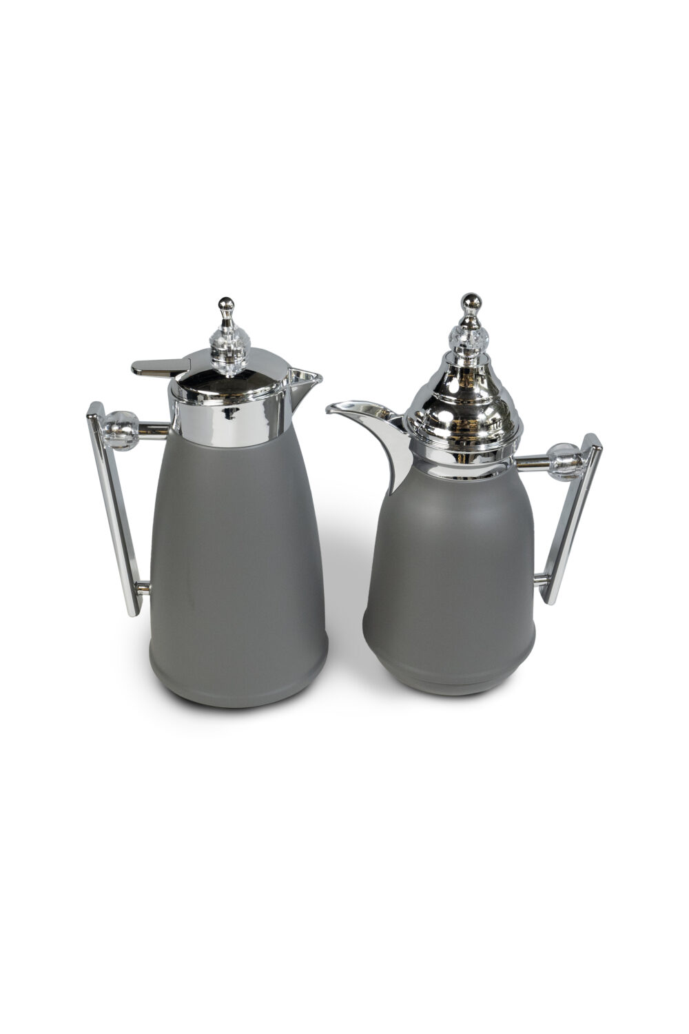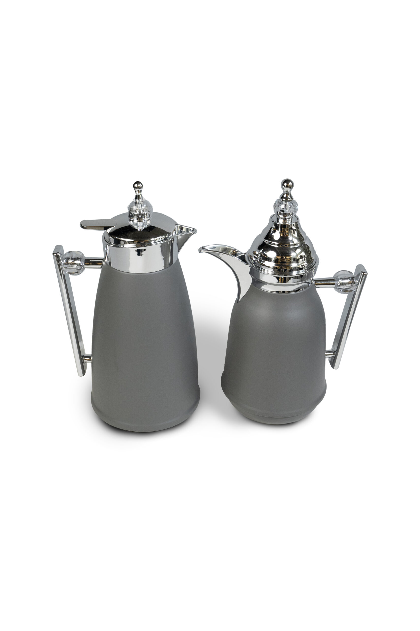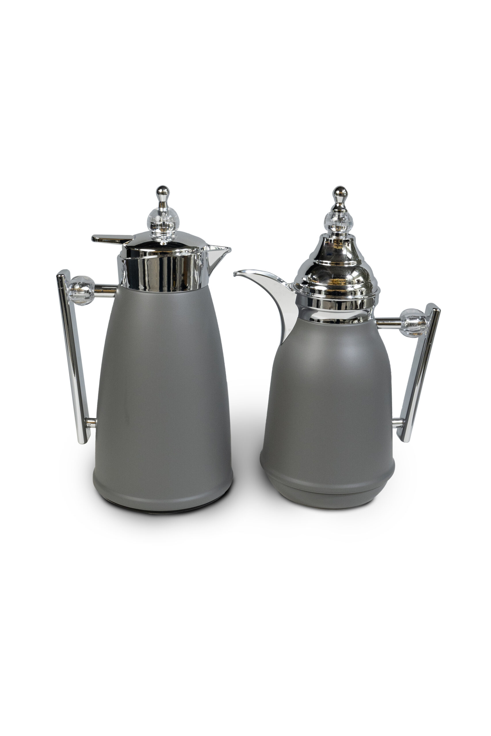 Almarjan Vacuum Flask 2Pc Set Metal Body with Acrylic Handle &Matte Silver