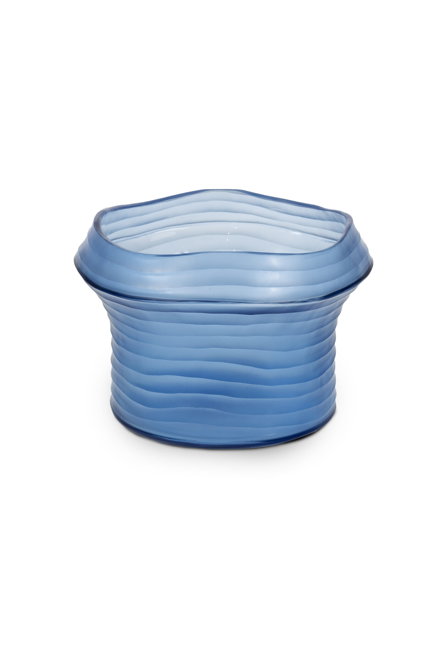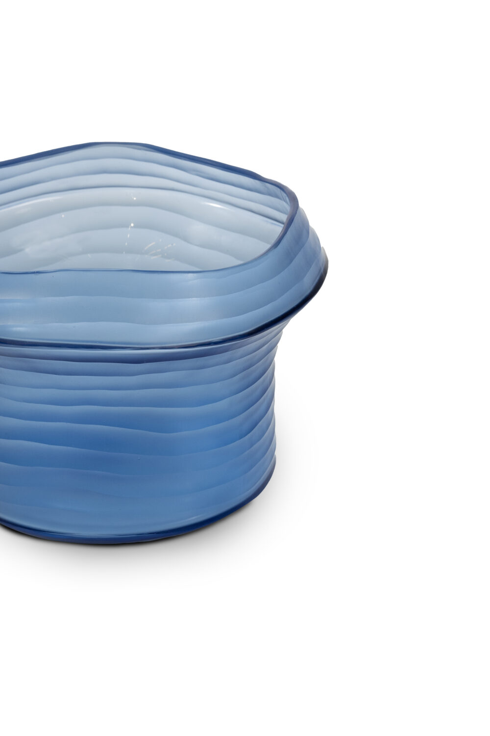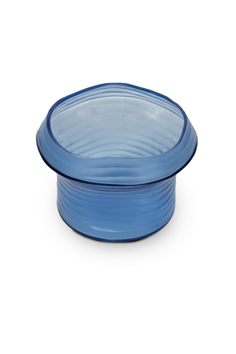 مزهرية زجاجية مزخرفة باللون الأزرق الداكن
