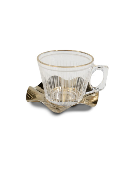 كمية Tea Cup Glass 6Pc Set Clear with Gold