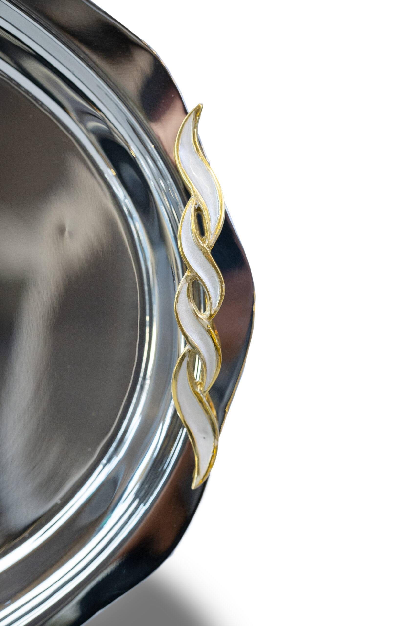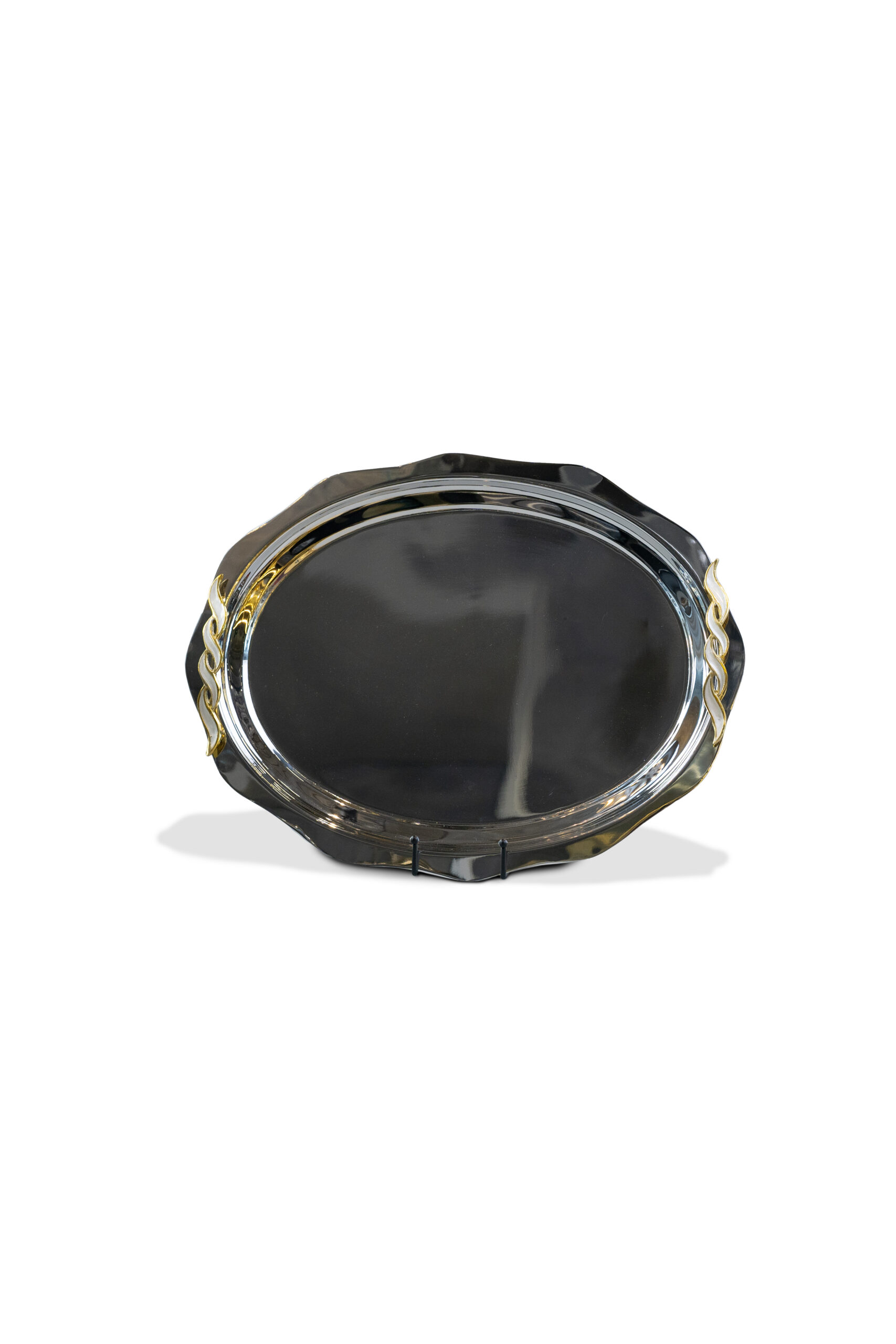 صينية وابا أكريليك بمقبض طقم قطعتين فضي جرانيت