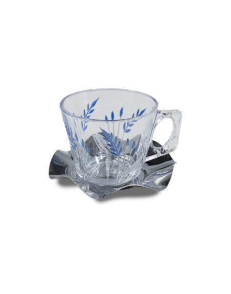 Tea Cup Set 6Pcs Clear with Blue Flower Design