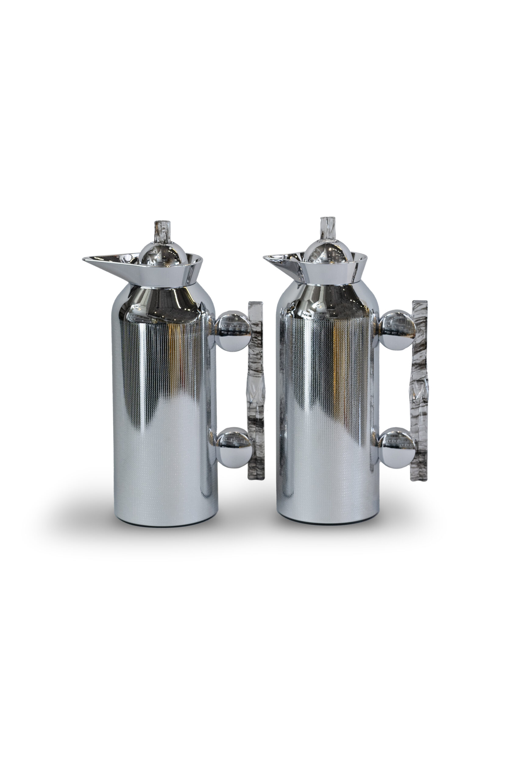 مجموعة قارورة فراغ وابا آرام مكونة من قطعتين بمقبض رفيع فضي لامع