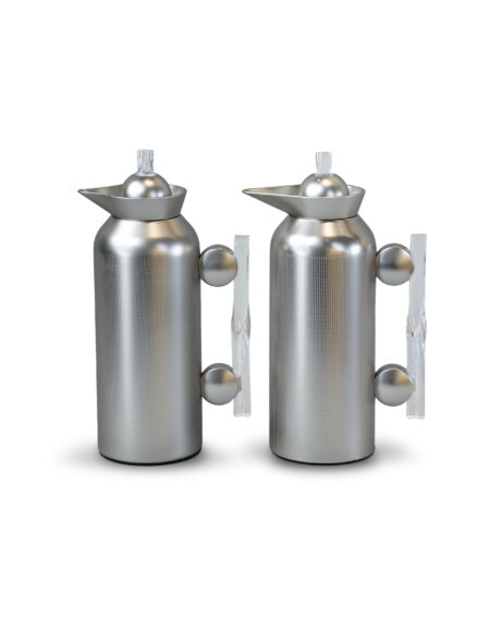 طقم قارورة فاخرة مكونة من قطعتين فضي بمقبض أكريليك