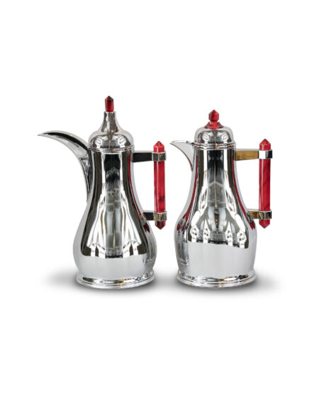 طقم قوارير مفرغة فاخرة مكون من قطعتين باللون الفضي ومقبض أحمر