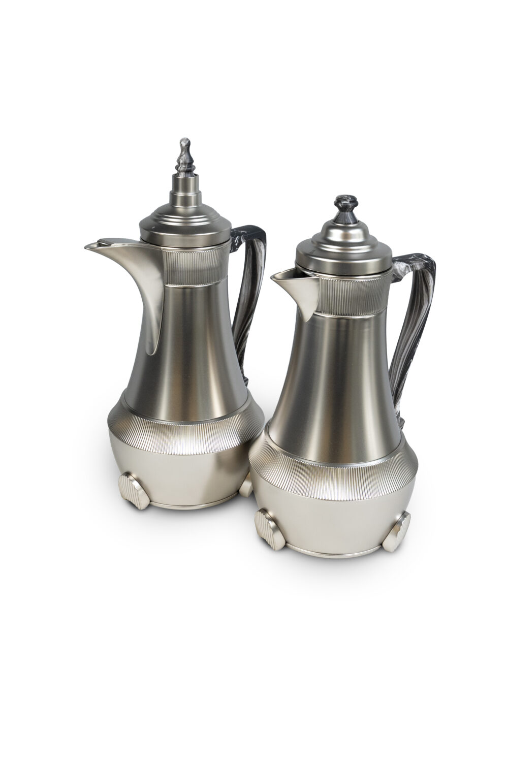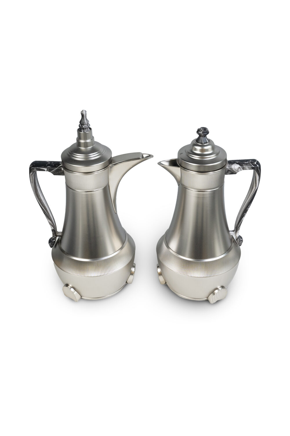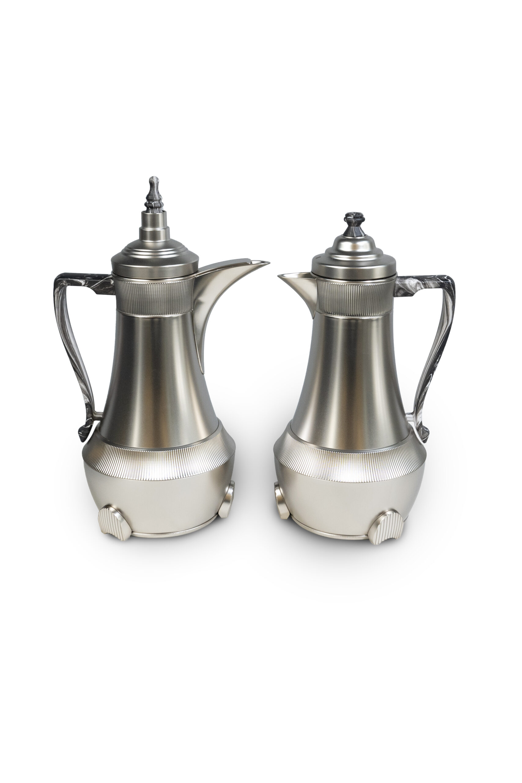 Almarjan Vacuum Flask 2Pc Set Metal Silver with Acrylic Handle