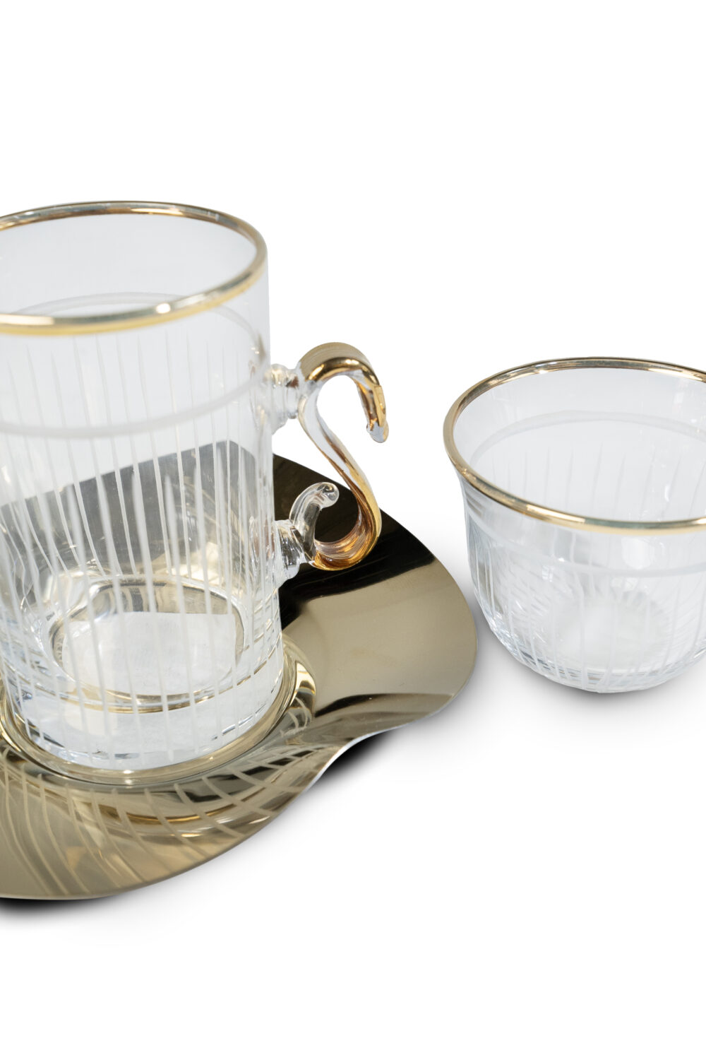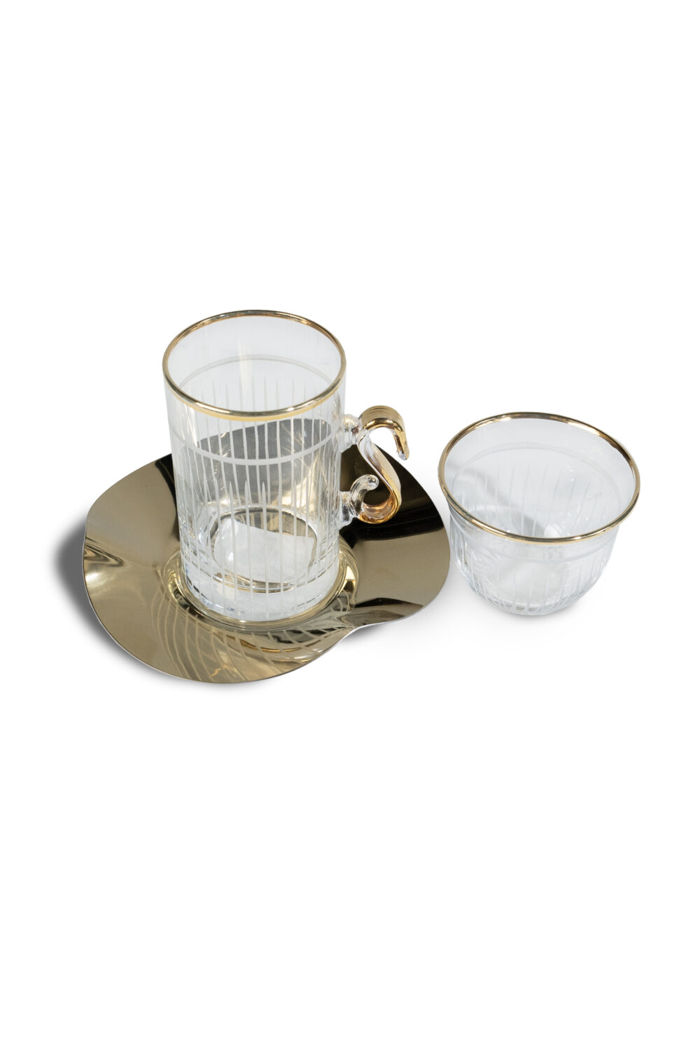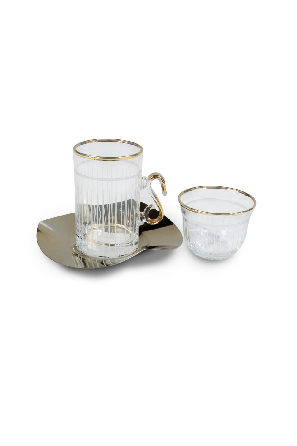 Ishtikana Tea Cup Glass 18pc Set Clear with Gold