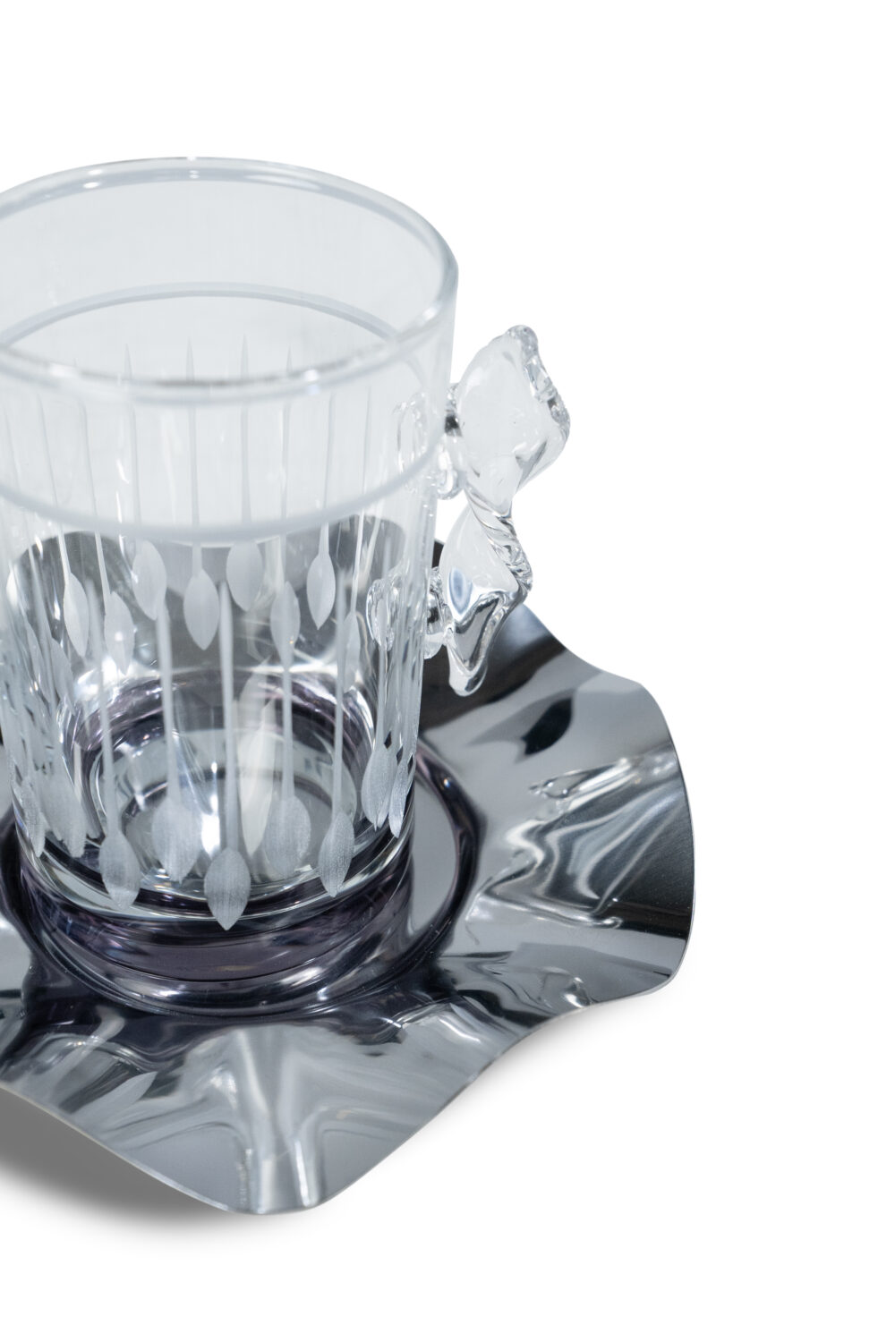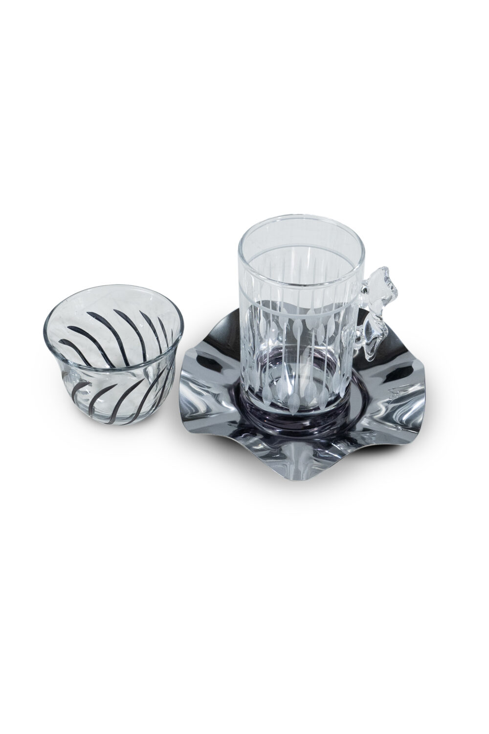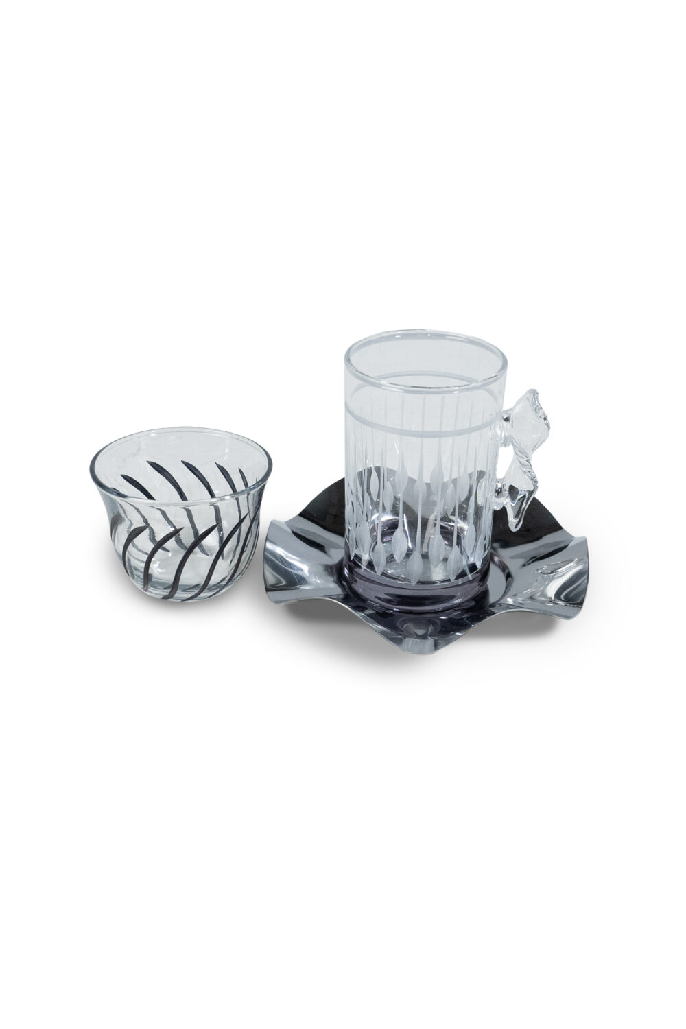 Ishtikana Tea Cup+Finjal 18pc Set Clear with Black Design Line