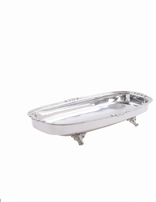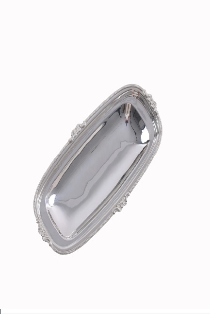 Elevate your dining experience with the Ornate Silver Rectangular Serving Tray. Features intricate detailing and a polished surface, great for any occasion.