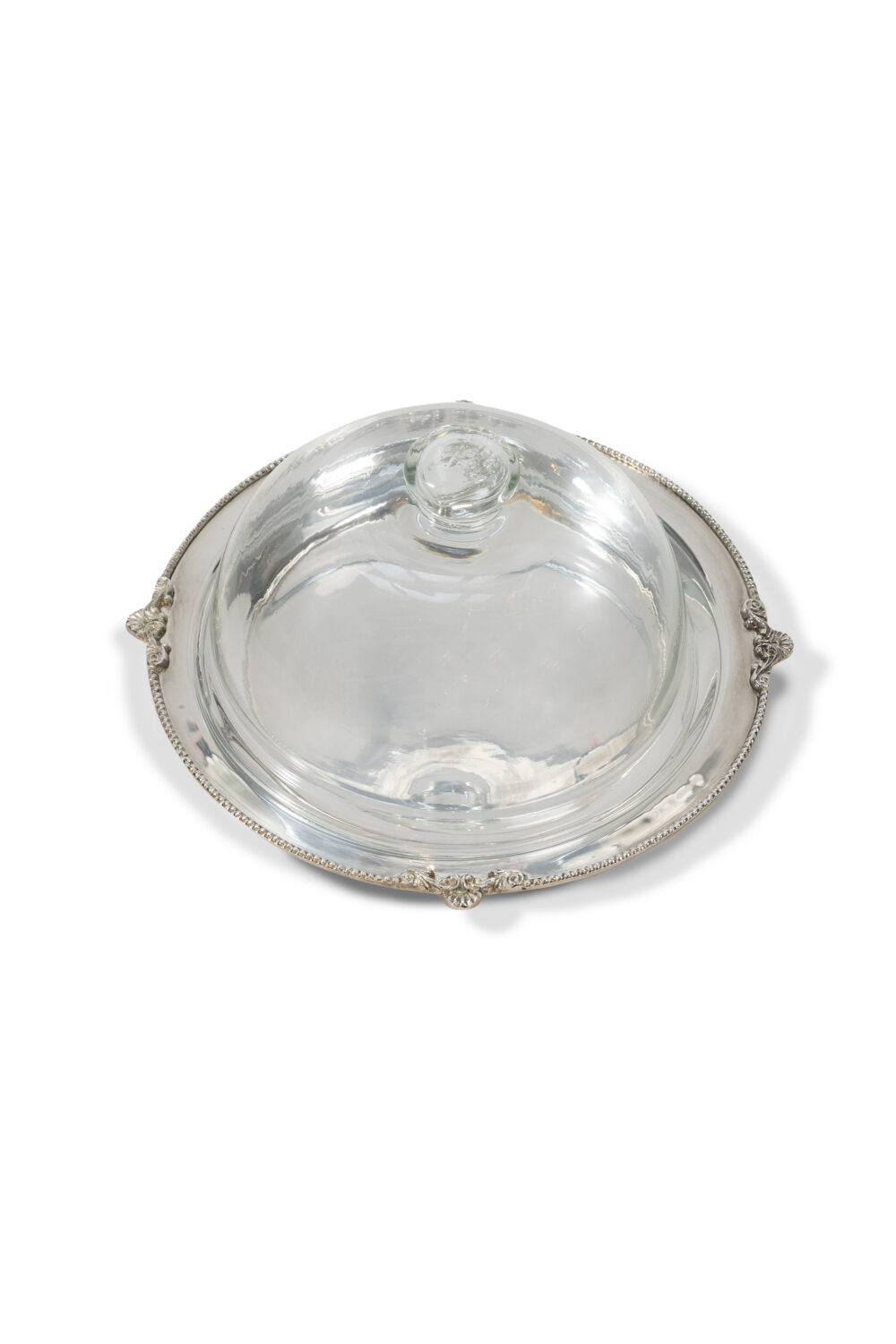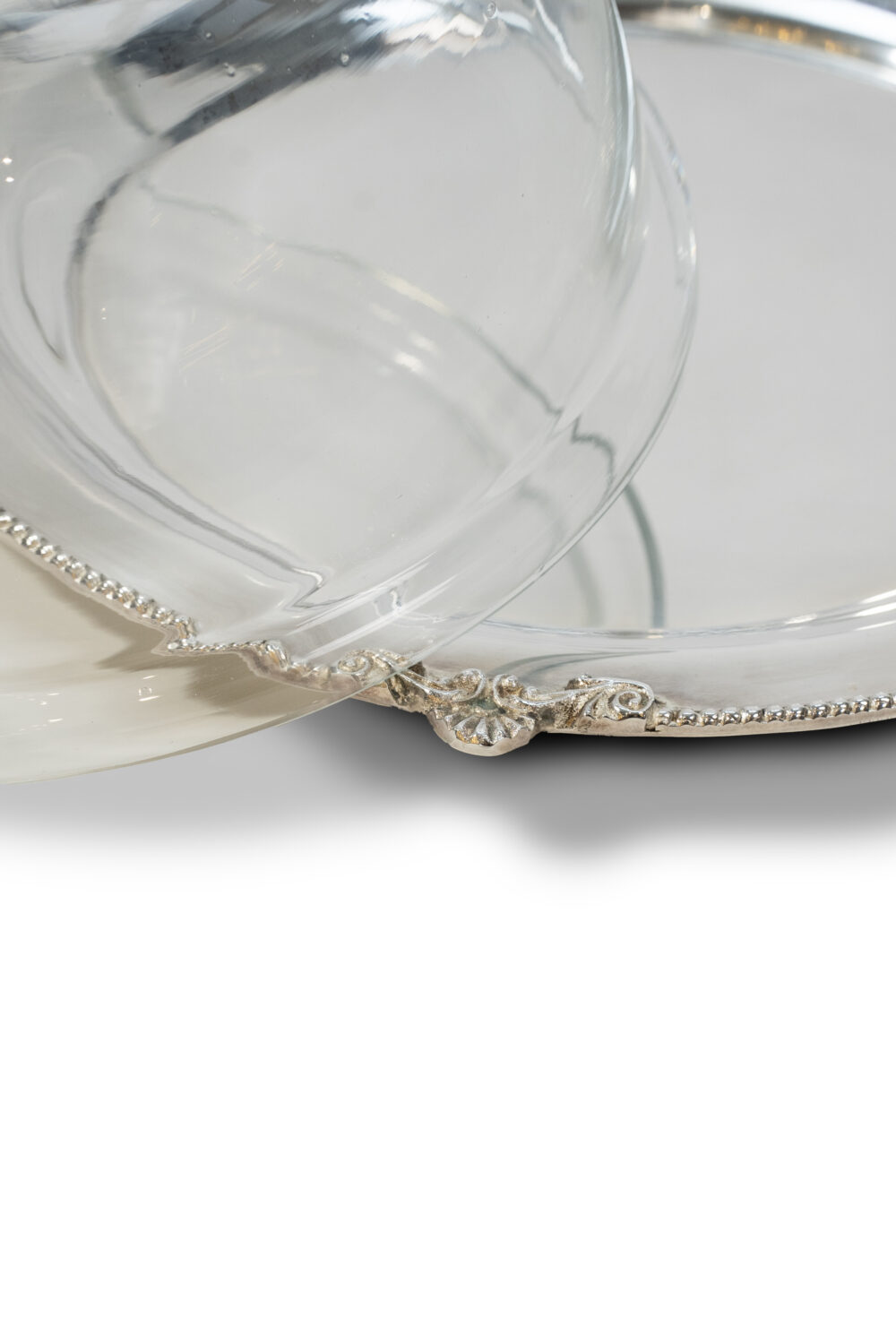 Glass Bowl with Silver Tray
