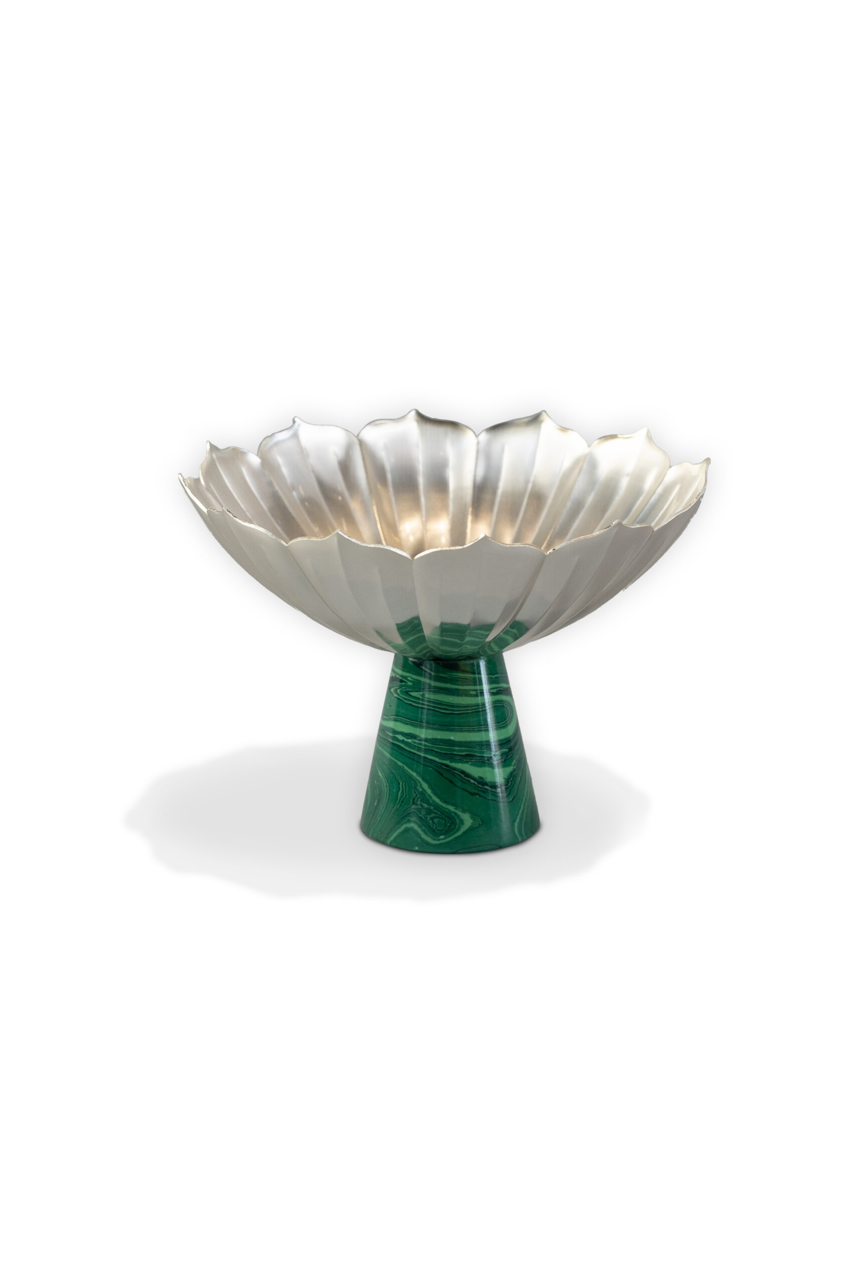 Silver Bowl Dainty Flower with Marble Light Green Stand