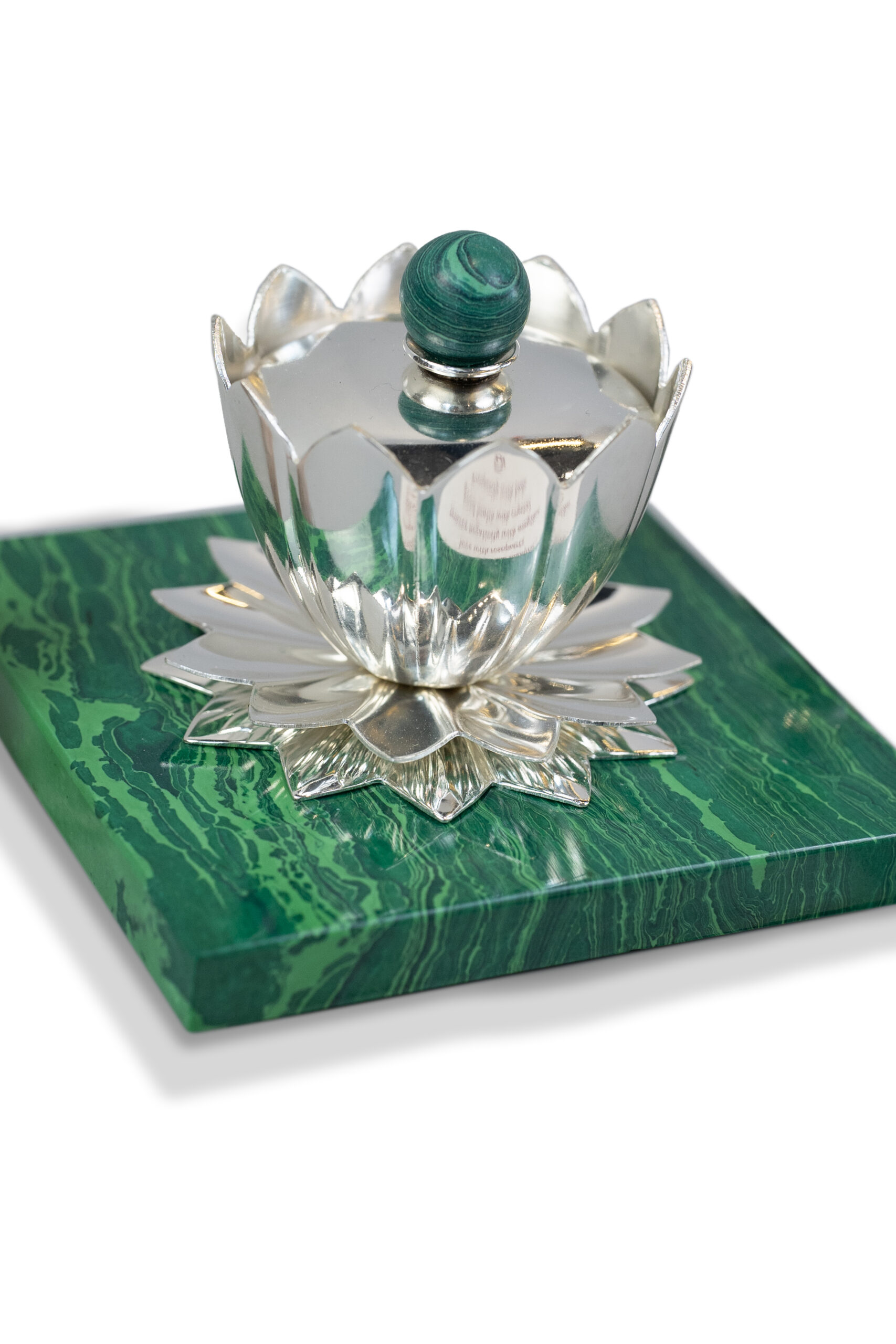 Silver Tea Light Lotus Square Malachite with Lid Dark Green Marble