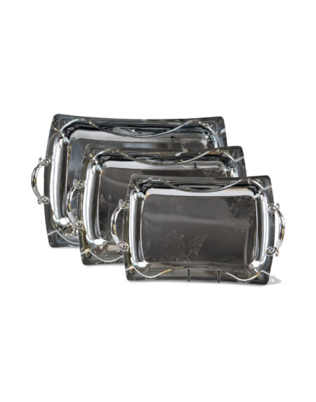 طقم صينية مستطيلة من الفولاذ المقاوم للصدأ مكون من 3 قطع