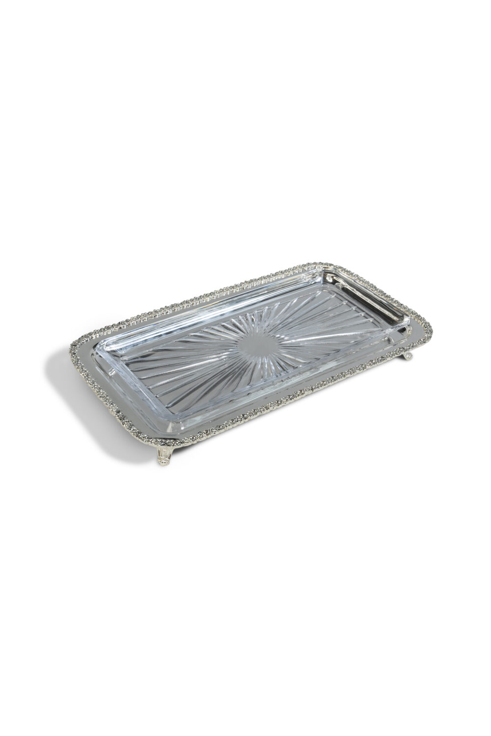 Turkey Rectangle Silver Tray With Glass Bowl quantity