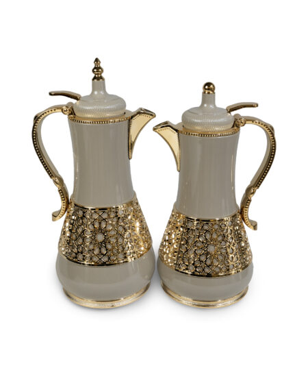 Delux Vacuum Flask 2Pc Set Gold with Cream quantity