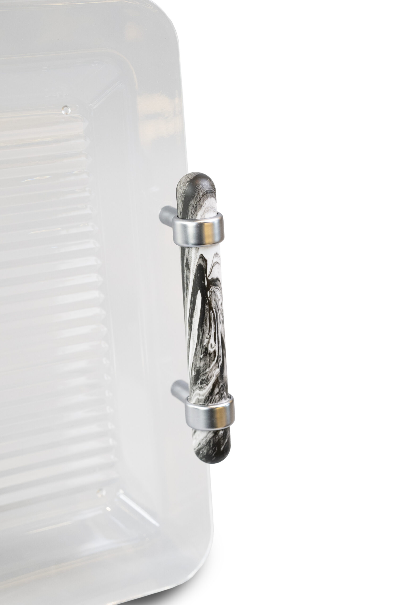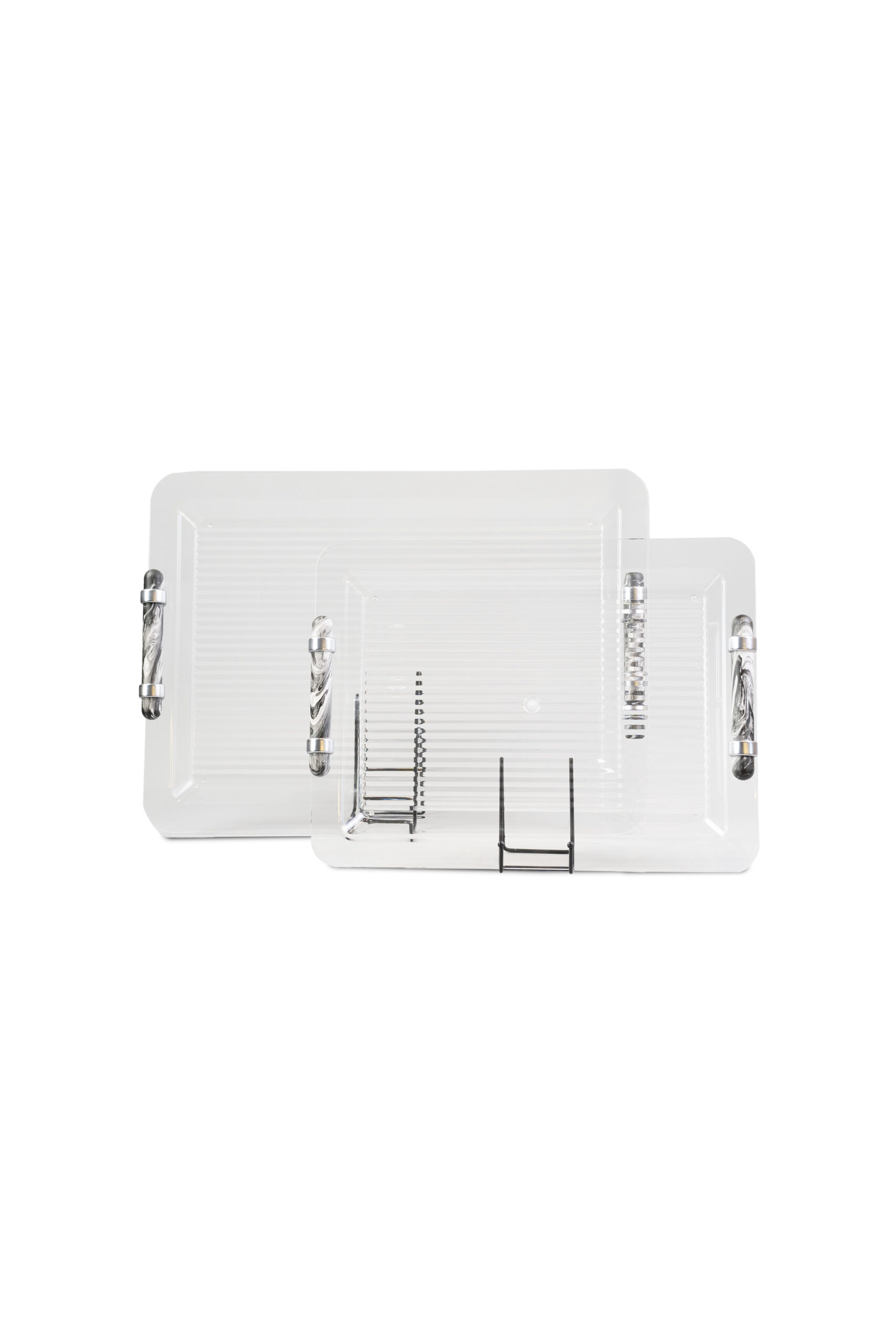 Waba Acrylic Tray with Handle 2pc Set Granite Silver